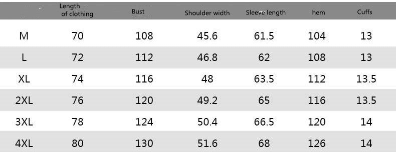 • Sizes: M, L, XL, XXL, XXXL, XXXXL