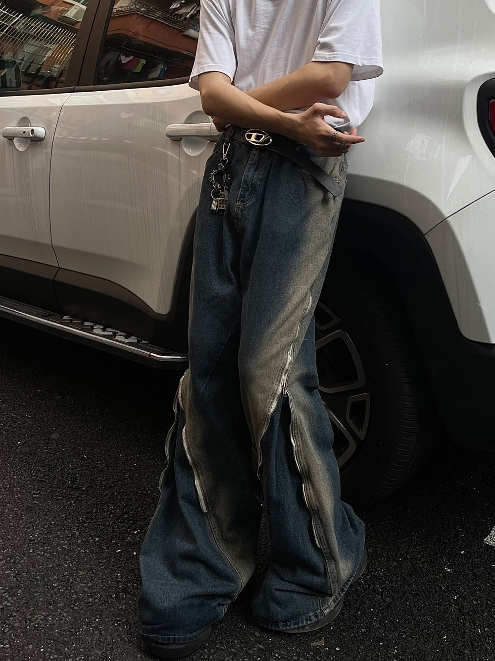 Elevate your streetwear collection with these Men’s Loose Double Zipper Slightly Flared Jeans, crafted from durable denim fabric. Featuring a mid-waist fit, slightly flared leg, and double zipper design, these jeans combine casual style with a unique urban edge. The washed blue finish adds a modern twist to classic denim, making these trousers ideal for casual outings, streetwear outfits, or everyday wear. Available in sizes S, M, L, XL, and 2XL, they offer comfort and versatility for different body types.