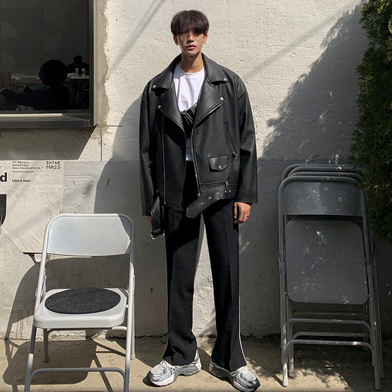 Men’s Slim PU Leather Jacket – Oblique Zipper Lapel Jacket